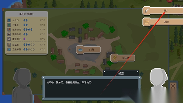 5、时常会有强盗来扰乱村庄,点击战斗,给他们一点好果子吃吃;