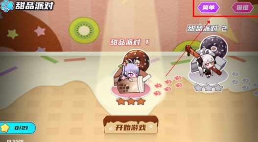 1、开启盲盒派对官方版本,点击“开始”,接着挑选关卡,同时选择难度,目前难度分为简单与困难两种。