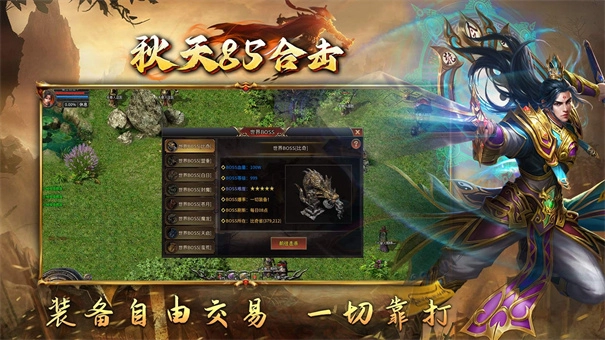 1. BOSS刷新时间统一为30至60分钟,每位玩家都有机会获取终极装备。在野外畅享自由PK爆装,感受别具一格的刺激体验。