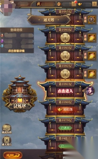 在铁杆三国游戏中通天塔是游戏的核心爬塔玩法,分为“通天塔”和“试练塔”,其中“试练塔”在玩家“通天塔”通关400层后才解锁。