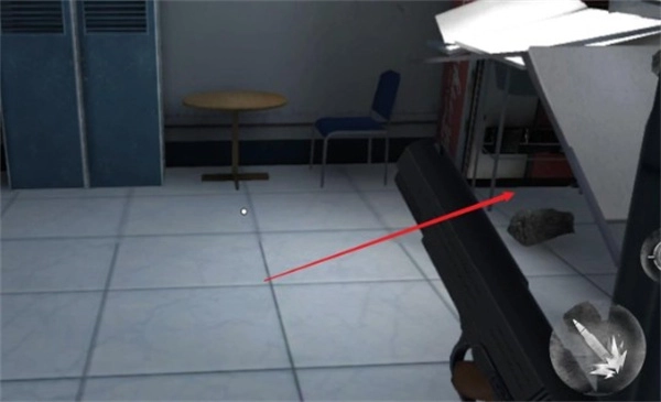 7、当您进入房间,在前方的桌子上能够发现一个杯子。利用这个杯子投向丧尸,以此来吸引丧尸的注意力。
