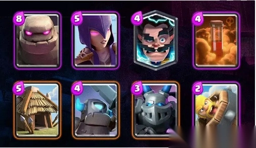 2、以石头人为核心的这套卡组,要是加入增强后的女巫,实力会变得更为强劲,简直势不可挡。虽说它的平均费用4.4,在灵活性上稍显不足,但这套卡组本就不是主打开局抢攻的类型。在前期,依靠小皮卡、机甲、电法、滚桶以及小屋,就能构建起一道坚固的防线。等游戏进入双倍圣水时间,女巫与石头人共同推进的攻势,对手很难抵御。毒药则用于辅助清除对方的解场卡牌。没过多久,石头人后面便会簇拥着大量卡牌单位,如同人海一般,此时对手只能选择败退。