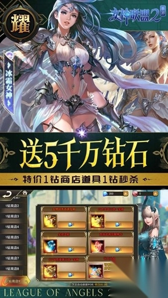 1. 开启女神联盟2钻石折扣版本,进入游戏主界面,点击商城按钮。