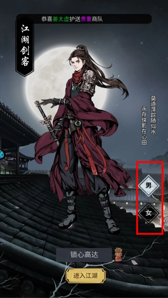 3、确定好性别与起哥游戏 ID 后,点击签筒能够随机更改名字,点击“进入江湖”即可开启游戏。