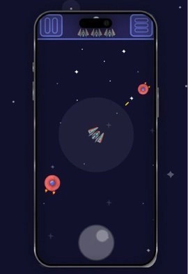 1、操控飞船在屏幕中移动,避开敌人的攻击。