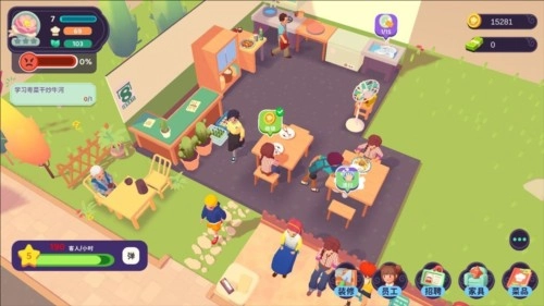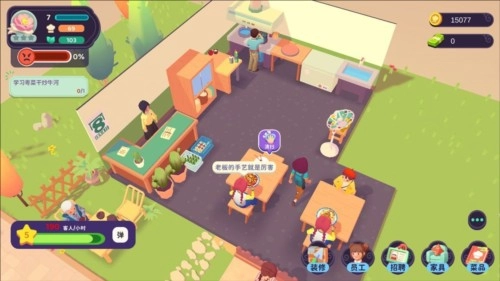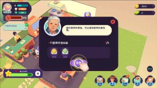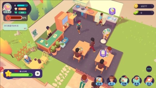 随着你招待的客人越来越多,餐厅积攒到一定的口碑时,你就可以通过招聘服务员和厨师来加快照顾顾客的速度,身为店长的你就可以解放双手啦!