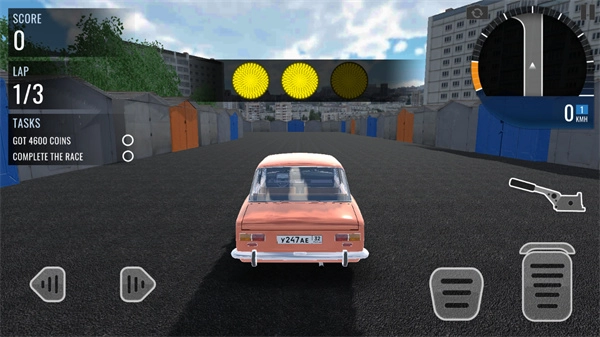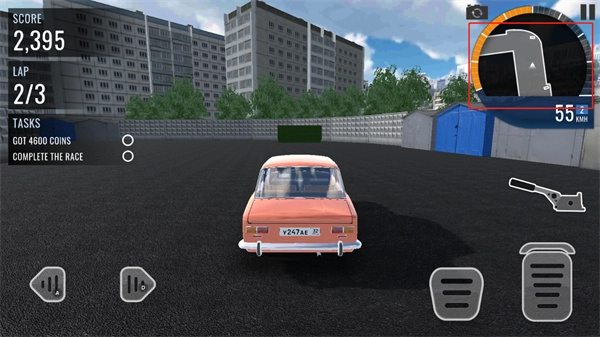 7、玩家需驾驶俄罗斯汽车进行跑圈,屏幕左边控制方向,右边则为油门和刹车;