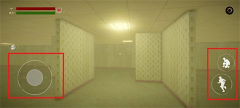 4、左边轮盘控制移动,右边轮盘可以跳跃、蹲下。