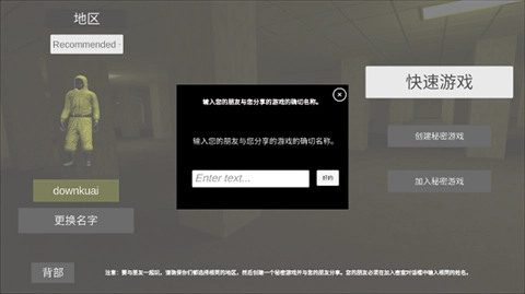 6、选择相同地图、地区后,输入相同的房间名称,就能够一起游玩了。