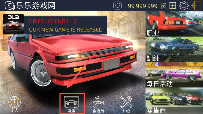 在游戏中,玩家将扮演一位因事故而遭禁赛的欧洲车手,为了探寻黑暗赛车的秘密,踏上前往日本的旅程。值得一提的是,游戏简化了操作,玩家只需将油门踩到底,就能轻松保持漂移状态,非常适合新手快速上手。1、在主界面,点击下方的车库。