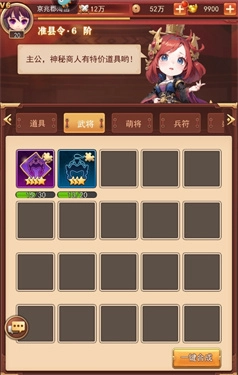 4、遣散设有武将商店,通过遣散或碎片回收所获取的武将精魄,能够在该武将商店中兑换武将。