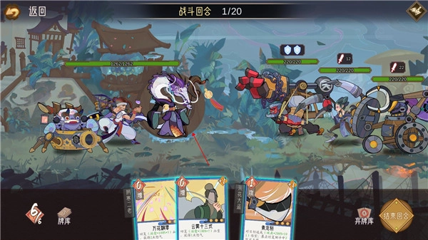 4、卡牌大体可分为两类,一类是用于己方的增益卡牌,另一类是针对敌方的攻击卡牌。每次使用卡牌都会消耗行动力,若行动力不足,便无法使用卡牌。
