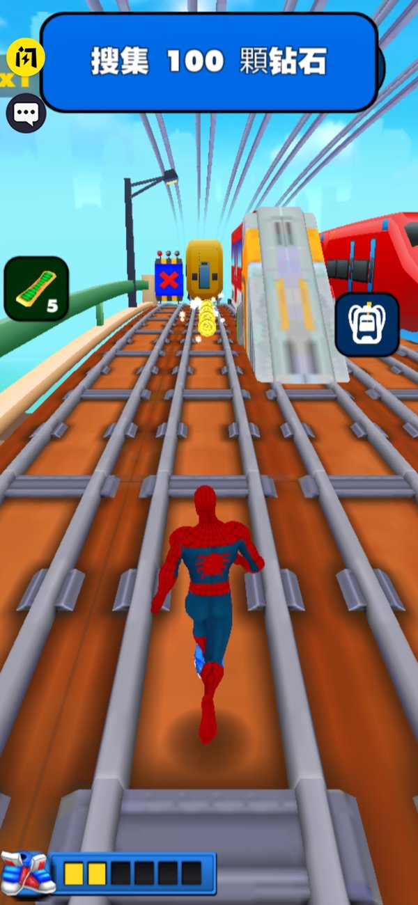 4、在与蜘蛛英雄一同奔跑的过程中,时间越久,你就会跑得越快。因为在奔跑时,你可以通过滑行、跳跃以及冲刺等动作,来躲避迎面而来的公共汽车。这款令人热血沸腾的英雄蜘蛛游戏,不仅动作元素丰富,还拥有趣味十足的游戏环境。