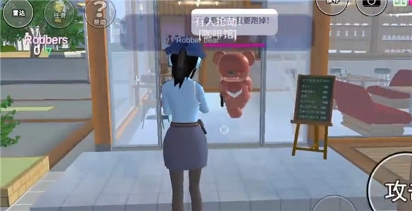 1. 在樱花校园模拟器里,玩家换上警服没过多久,右上角便会出现任务。点开任务,能了解到强盗熊正在实施抢劫,将其打败就能获得金钱。