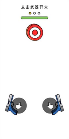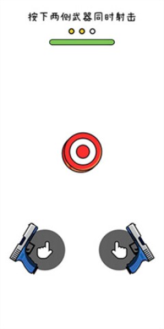 对于新手而言,游戏前期上手比较轻松,后续则会循序渐进地增加挑战难度,这种设计十分人性化,不会让玩家一下子就被高难度吓退,而是逐步引导玩家深入体验游戏的乐趣。1. 全身心投入到对角色的操控里,左右两侧各有一把枪,它们安静地处于待命状态,而你稳稳地坐在中间位置,聚精会神地等待目标从屏幕下方猛然冲出来。整个过程的基本操作要点在于精准把握节奏,做到眼疾手快,至于何时扣动扳机开枪,完全由你自行决定。