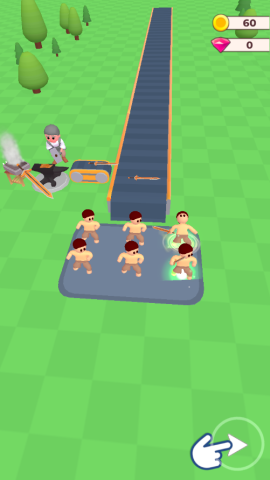 1当你进入游戏,解锁工匠后,他们便会自行制作武器,助力士兵们配备武器,进而攻击敌人并获取金币。