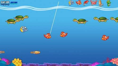 5、钓鱼的方法十分简单,只需轻点屏幕,上方的鱼线便会向下伸展。当鱼线顶端恰好触碰到鱼时,就能把鱼钓起来。大家多尝试几次,就能轻松钓到鱼啦。