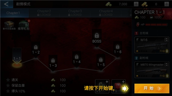 2、在游戏模式中挑选剧情模式,接着点击1 - 1章节。