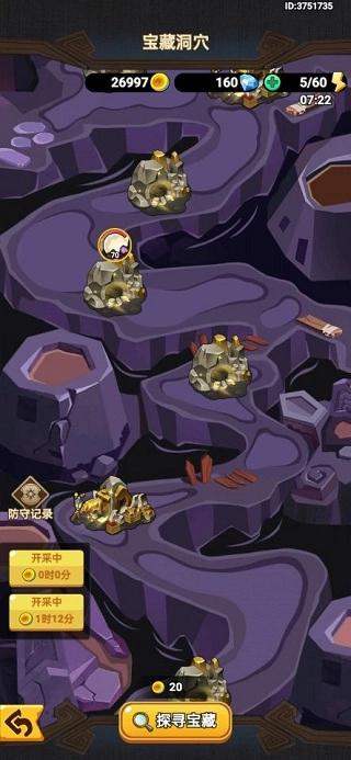 在宝藏洞穴里,能点击带有头像的金币洞穴,从而掠夺敌人开采的金币。不过,掠夺这一行为需要消耗体力,体力会随着时间慢慢恢复。各位冒险者可借助探寻宝藏功能,寻觅到合适的矿洞进行开采或掠夺。
