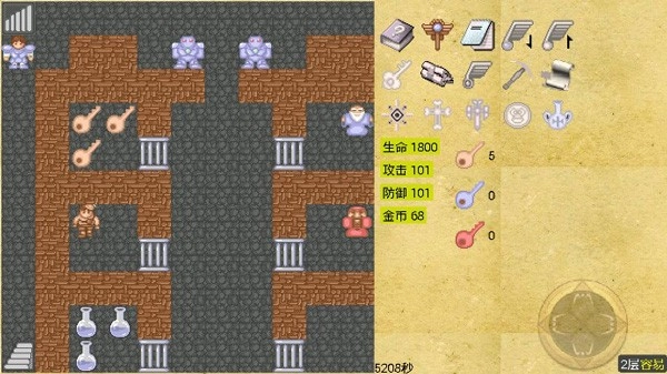 5楼:朝上方攻击绿色史莱姆,朝右方攻击绿色史莱姆,朝下方攻击红色史莱姆,接着打开门获取剑。然后朝上方攻击红色史莱姆,但不穿过门,回到中间道路去打蝙蝠拿到钥匙,之后下楼。