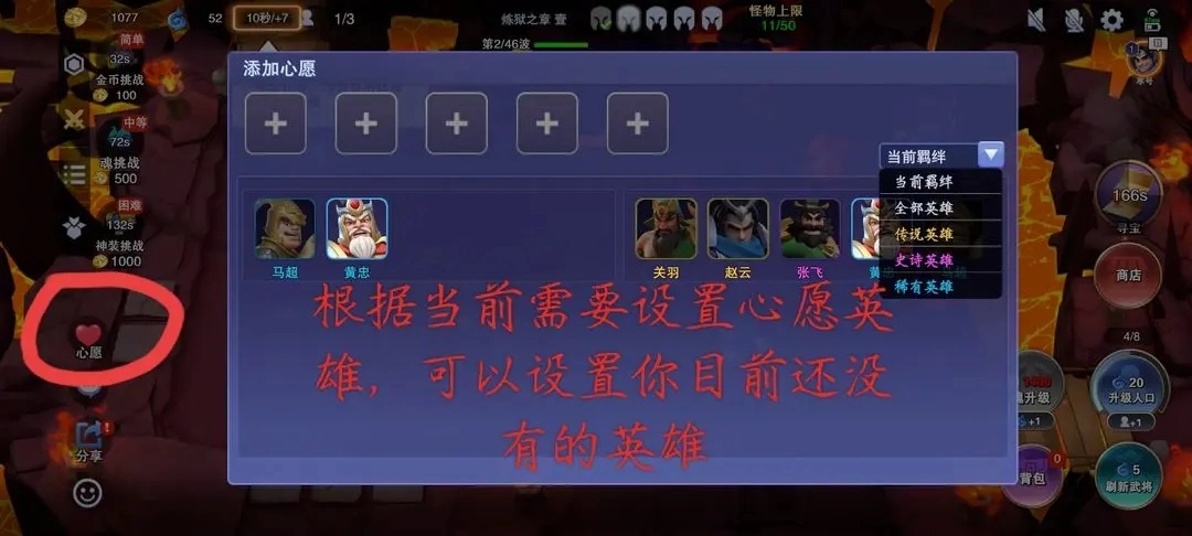 游戏开局时,根据自身的练度以及羁绊情况,把蓝色和紫色英雄添加到心愿单中(注意开局不要放橙卡)。如此一来,当队友刷到你的心愿卡时,会显示“队友需要”,这时队友就会考虑分享给你。