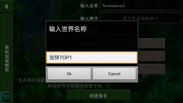 2. 输入世界名称,进而创建一个全新的世界