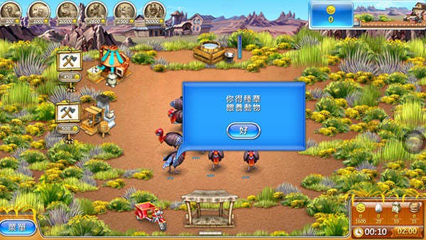 1、第一关:种下两粒玉米,饲养一头牛,当获取到300元时,即可通关。