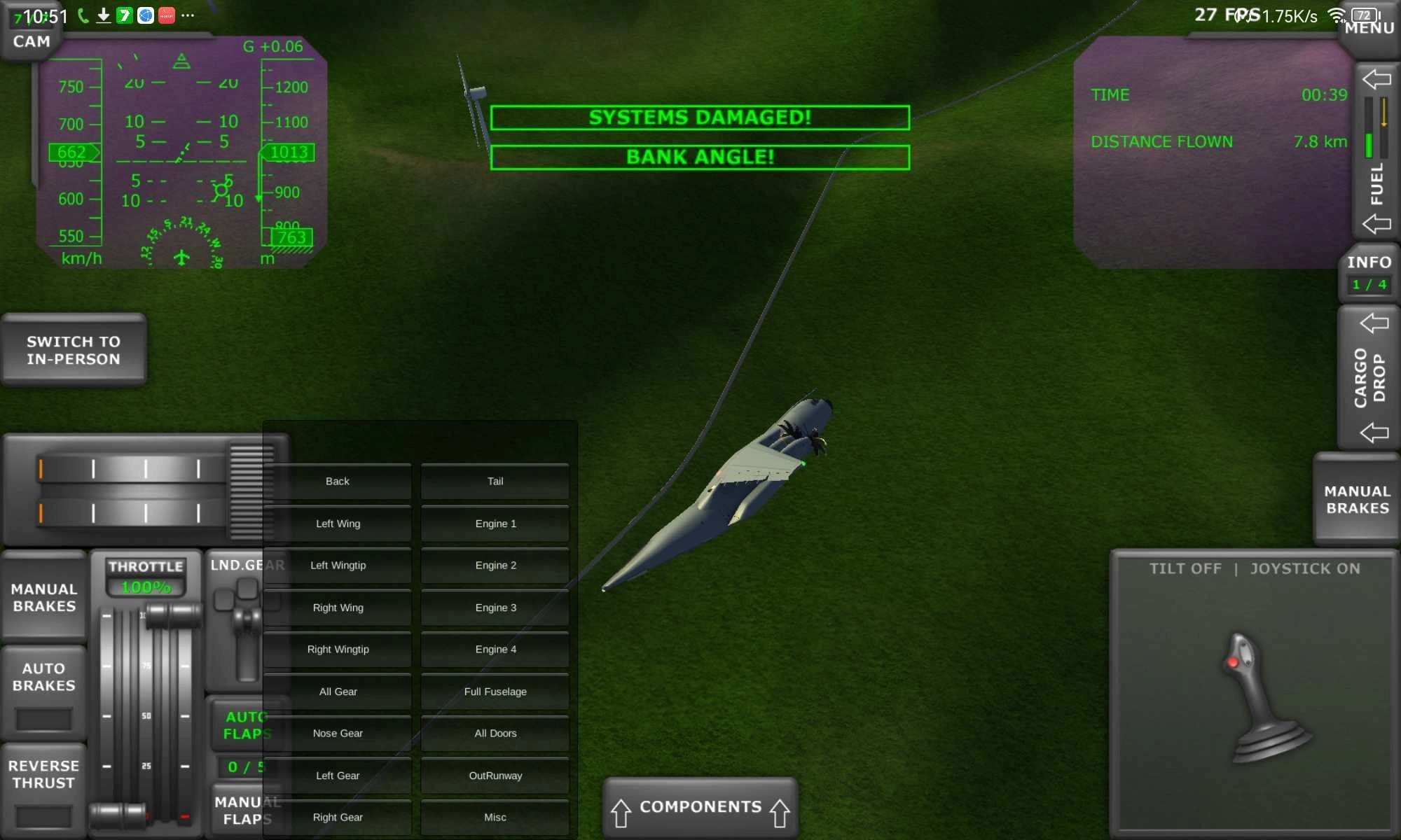 5、部分及全飞机遭受破坏(破坏情况包括限幅翅尖、满翼分离、尾巴分离以及主要机身断裂)。