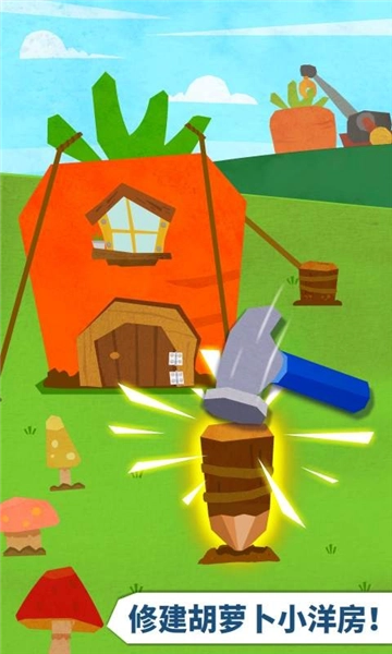 兔子姐姐超爱吃萝卜,那咱们就给它盖一栋萝卜洋房!操控吊车,把地里的大萝卜拔出来,再用绳子紧紧地把萝卜拴在木桩上。