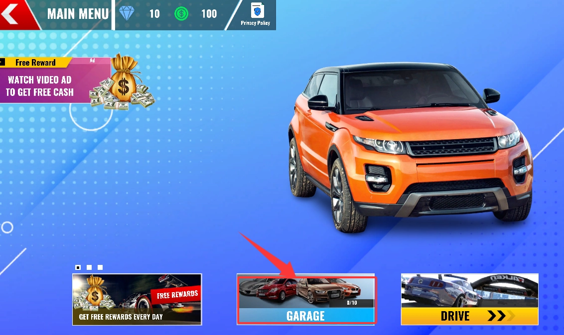 2、那个红色框框的区域是车库,点击它就能查看自己的车辆。