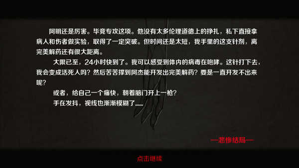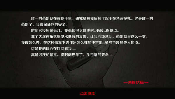 条件:若物资搜集未齐全,则前往心机明的收容所,在此期间小明不能死亡,小萝莉必须存活。