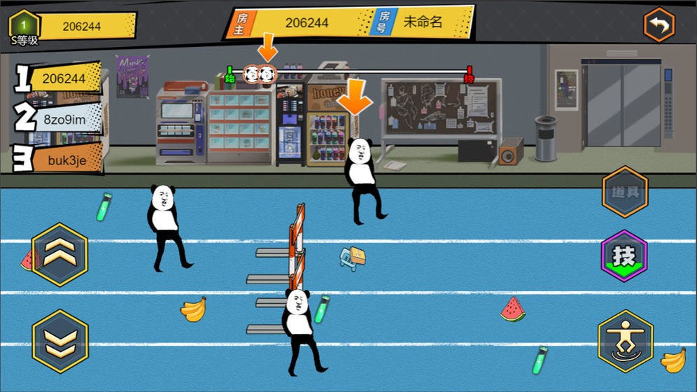 玩家可以和好友进入同一个房间参与田径跑步项目,最终率先冲过终点线的人将赢得比赛。