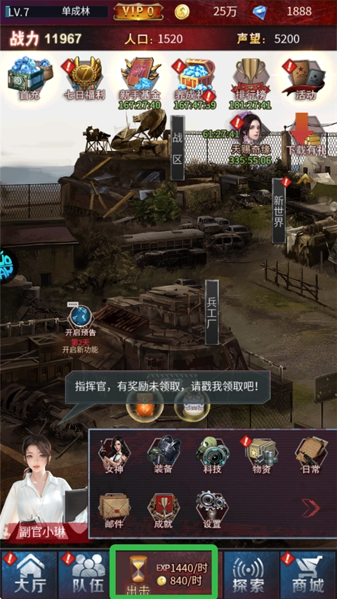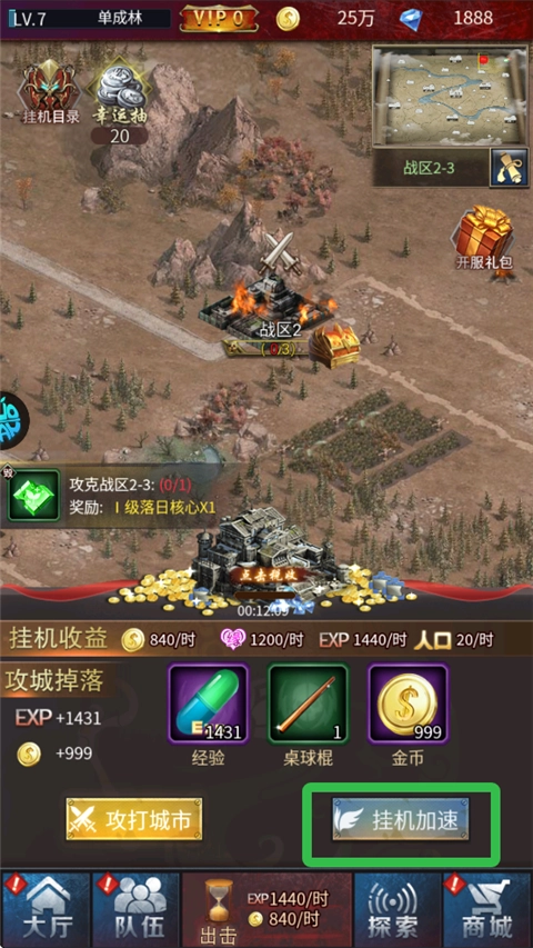 进入游戏后,点击“出击”指令,就能开启城市征战之旅。