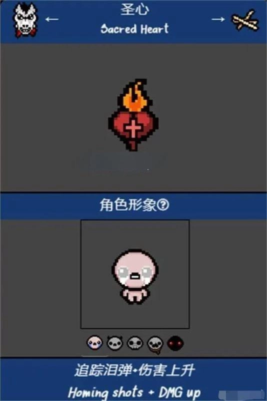 这个道具的数值加成直接明了,能提升1点生命上限,攻击倍率变为原来的2.3倍,还会增加1点攻击修正,同时带有跟踪攻击效果。不过它也有一些负面效果,会降低0.4的射速和0.25的弹速。它精准地满足了以撒的核心需求,堪称数值类道具中的顶尖存在。