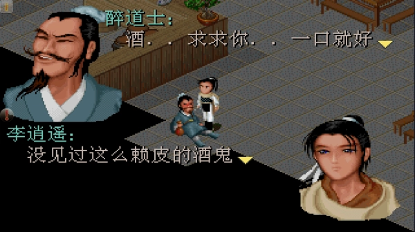 接下来就是和各个NPC进行兑换,逐步完成剧情任务,比如在这里遇到了醉道士,我们得找酒给他喝,他才会从门口离开。