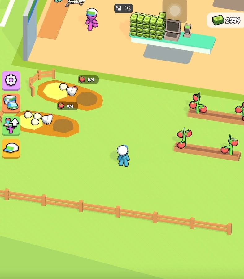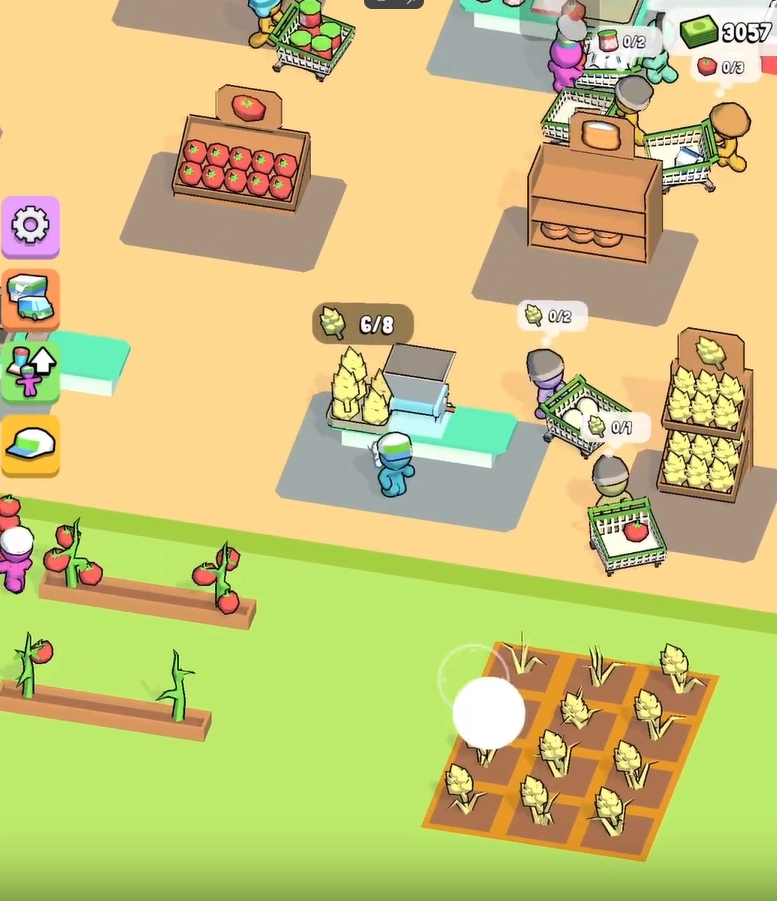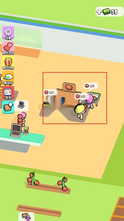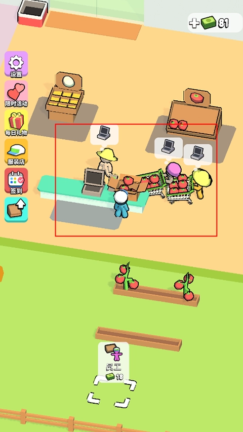 这时购物者买完东西后会在收银机前排队,玩家需要走到收银机那里,把物品用箱子装好递给他们,就能获得相应的金币。