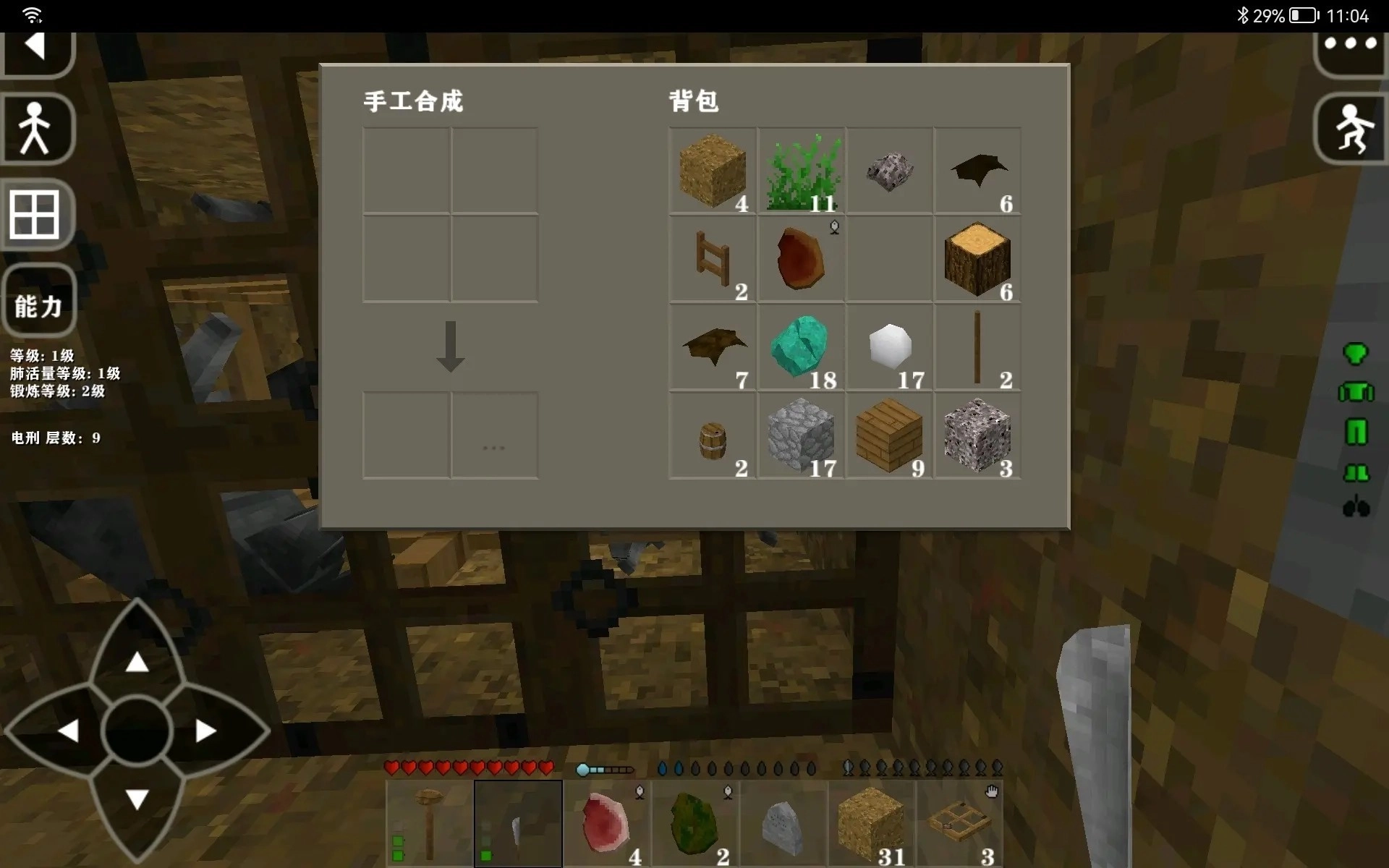 做出楼梯爬上去,食物是不愁了,出来赶紧挖木头