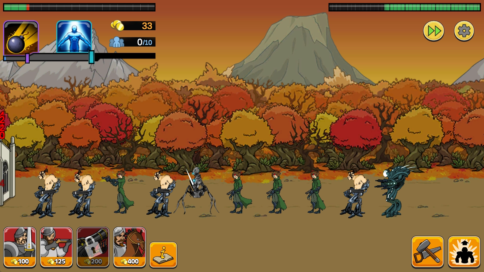 在游戏里,你能够借助提升文明等级来对战士进行升级,从斯巴达战士、阿努比斯战士,到步兵炮、榴弹兵、机器人等,整个过程会十分有趣。