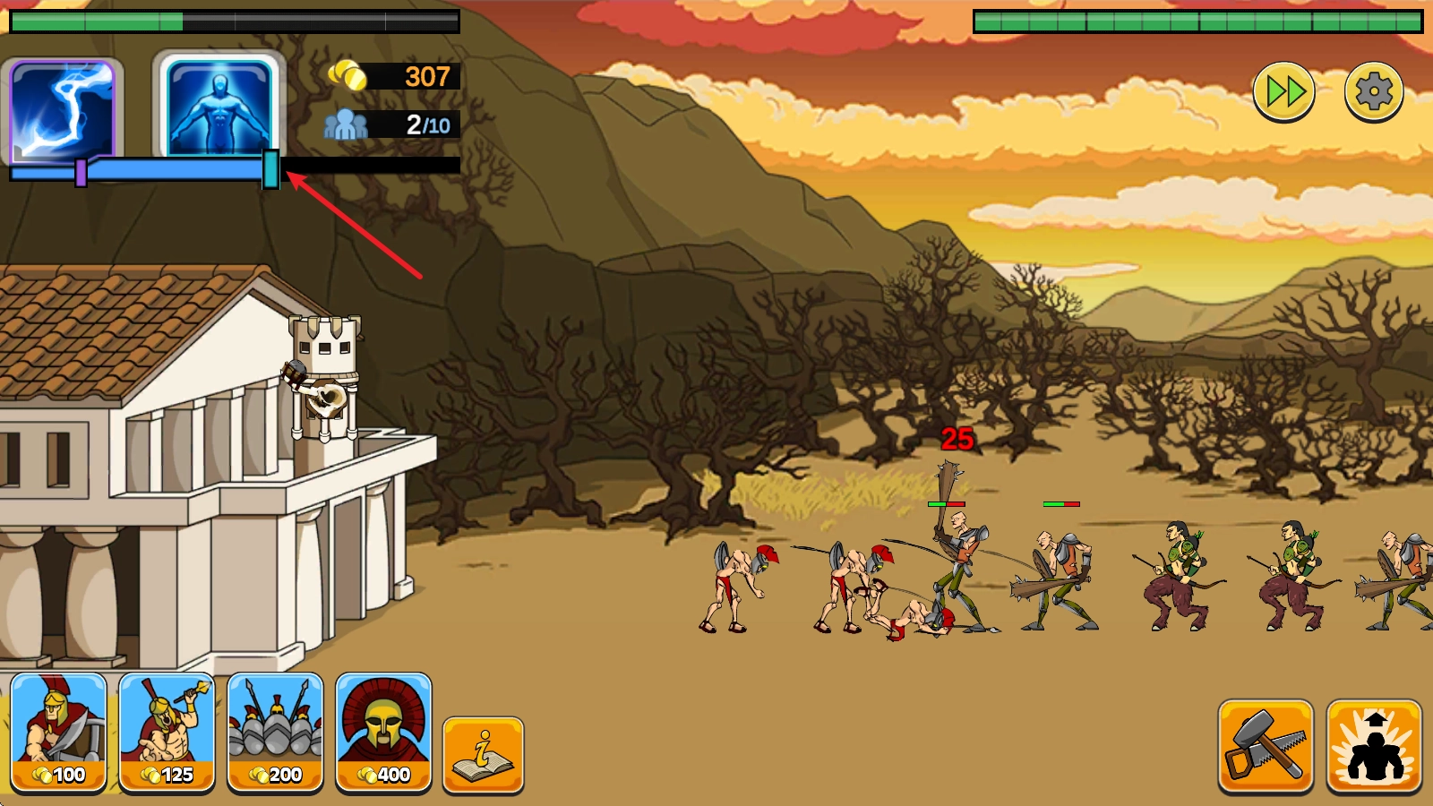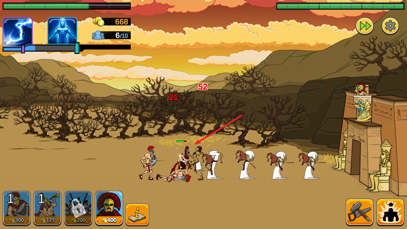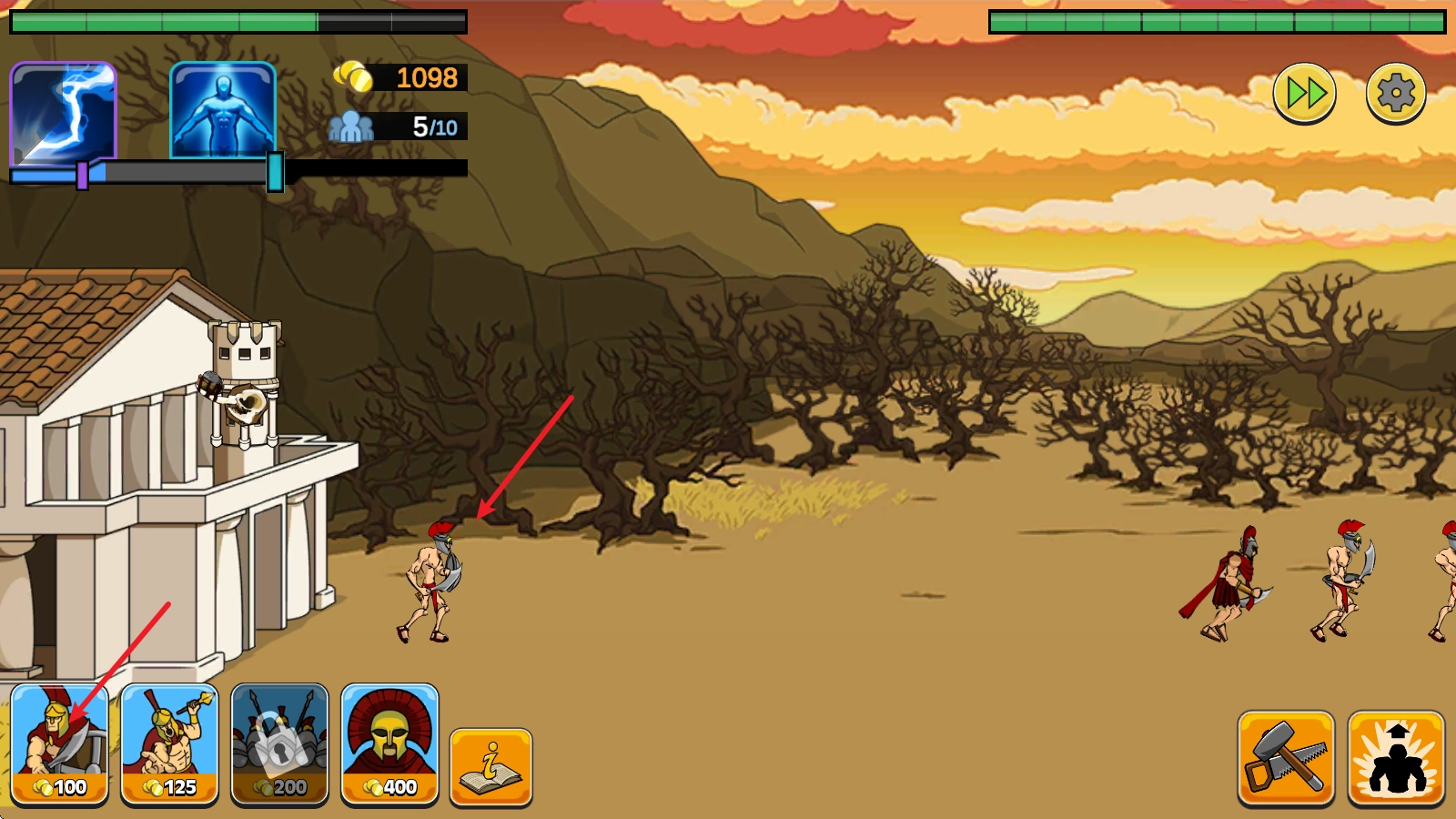 游戏中消耗金币即可召唤对应的战士。