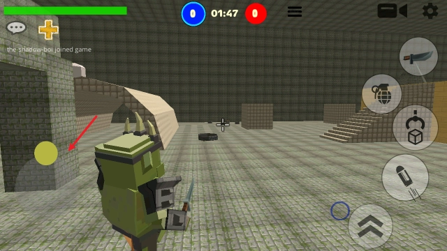 在主界面点击BATTLE按钮就能匹配进入战斗场景,进入战斗后,拖动左侧屏幕区域即可操控角色移动。