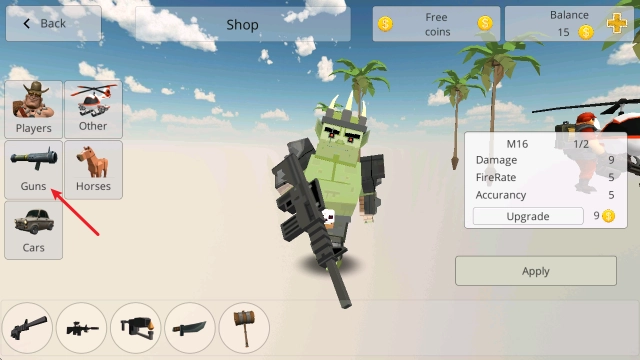 选择左侧的guns即可切换不同武器。