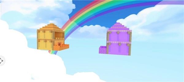 这图里是空中的两座城堡,分属敌我阵营遥遥相对,城堡各有两层,阳台的围墙都是石砌的,建筑风格很简约。