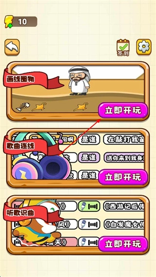 在主选择界面中,找到“画线圈物”板块,点击其对应的紫色“立即开玩”按钮,即可进入该关卡。