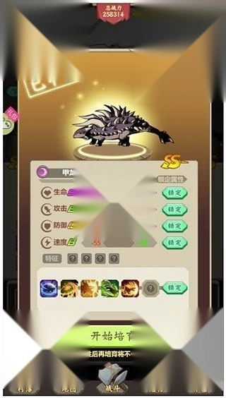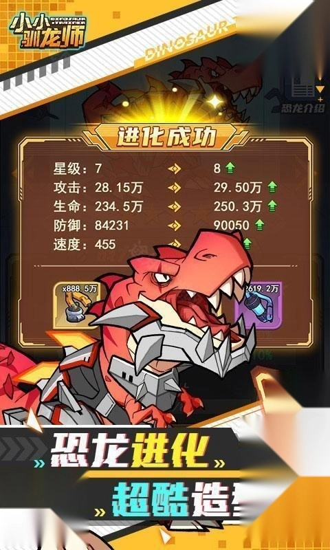 找到你要培养的恐龙,点击它,就能看到如下画面。
