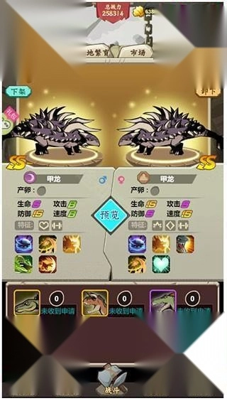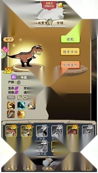 最后是市场挂机玩法,具体操作是把你计划繁育的恐龙挂到市场上,静候其他玩家主动来找你进行配对繁育。