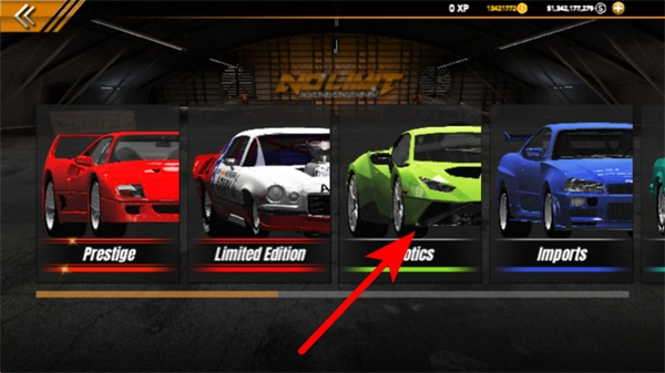 按照箭头指示的方向,点击相应的车辆分类,这是切换赛车类型的关键操作,完成操作后就能查看该分类下可供选择的车辆。