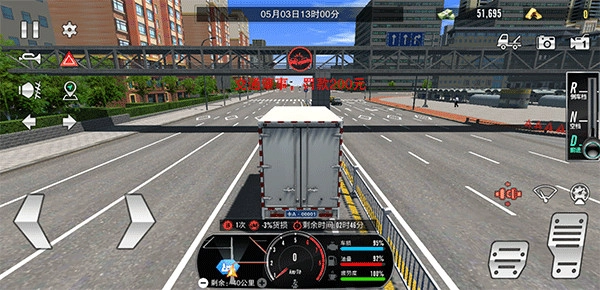 在运输过程中,玩家需借助下方地图导航前往运输终点。运输途中请务必系好安全带(其对应刹车上方的红色图标),同时要严格遵守交通规则,避免发生撞车等事故。若违反上述要求,不仅会面临罚款,还会导致货物损坏。