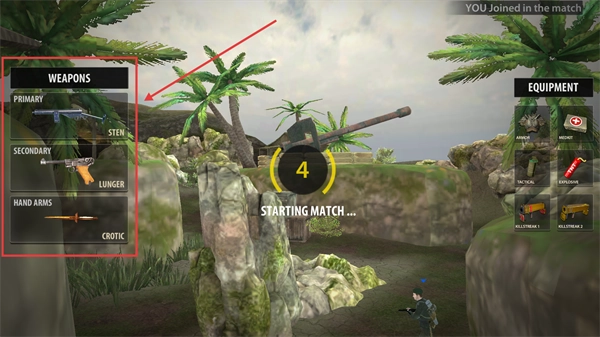 在进入战役之前,请先在【WEAPONS】界面确认【PRIMARY】栏的【STEN】和【SECONDARY】栏的【LUNGER】等武器装备是否适配。