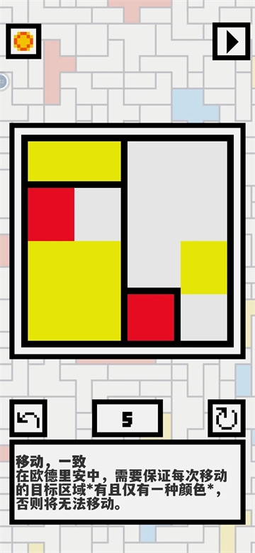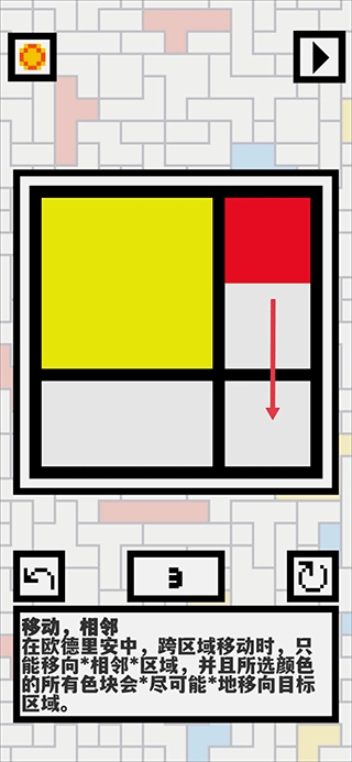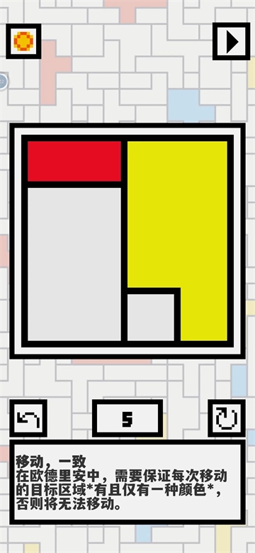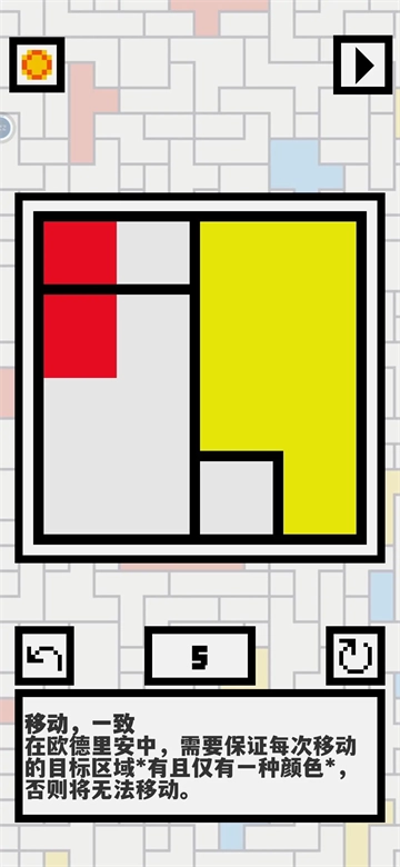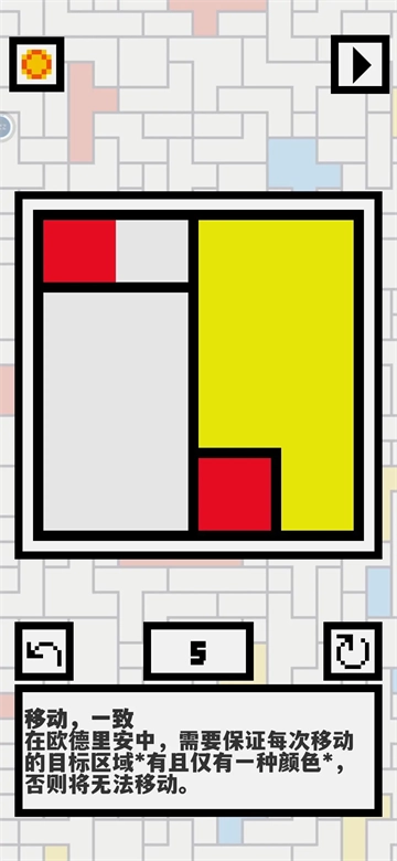 欧德里安是一款兼具几何美感与抽象艺术氛围的益智解谜游戏,玩家将踏入由色块与黑线交织而成的迷人世界,在规则与美学的边界中挑战自我、寻求平衡。你需要通过移动色块,将它们精准放置到画布的指定位置,从而让每一幅画作重拾和谐的美感。每一次正确的组合都如同完成一件独一无二的艺术创作,为玩家带来满满的成就感!