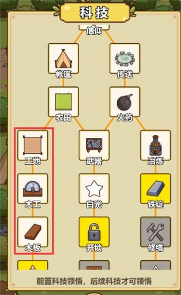 科技:遗迹建成后会化为智慧神,点击智慧神即可打开科技界面。